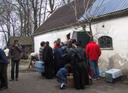 Naar schatting bezochten gisteren 250 tot 300 mensen de boerderij. Dafne, haar vaste medewerkers Dennis en Merel en een aantal vrijwilligers zorgden voor 'koek en zopie' in de (lege) hooimijt, stonden de bezoekers te woord en stopten de dieren in dozen of liefdevolle mensenhanden. Voor kinderen werd in het oude gedeelte van de boerderij - heel toepasselijk - de animatiefilm 'Chicken Run' vertoond. Maar de meeste kinderen vonden het ware leven op de boerderij en de dieren veel interessanter, vooral de rondhuppelende zwijntjes Billie Bofkont en Mannetje Bromsnor, de lammetjes Caesar en Eddy, de talrijke poezen, en natuurlijk Dafne's eigen kippen.
