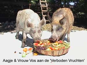 Lees het artikel in het blad 'Leven' Varkensmassage op het Beloofde Varkensland pagina 1 en pagina 2 Terugblik op de Grote Varkens-Verwen-Dag op 'Het Beloofde Varkensland' zaterdag 1 juni 2002 VARKENSMASSAGE voor Aagje, Vrouw Vos, Billie Bofkont en Mannetje Bromsnor.