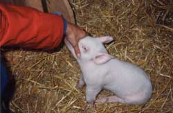 mijn toen 4 weken oude - uit de bio-industrie geredde - big. Zij werd bedolven onder aandacht en appeltjes.