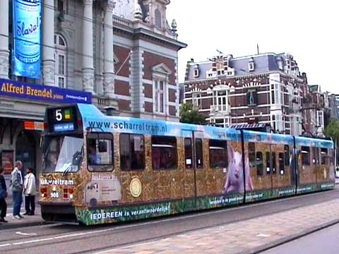 De Scharreltram - lijn 5 - gaat een jaar lang door Amsterdam rijden. Kijk onder knop "de Scharreltram". Daarna is het heel hard gegaan. Alle andere acties zoals Stier Herman, de Amstelparkkippen, Communicatie met het Varken etc. zijn met open armen door de media ontvangen. Daar zult u ongetwijfeld iets van hebben opgevangen. Daarom staan ze hier niet meer extra vermeld. Er was geen beginnen meer aan. Nu staan de acties onder de knoppen aan de linkerkant en duiken ze her en der op de site op, zoals in het Dagboek van een Dierengek, onder de knop Interviews etc. |