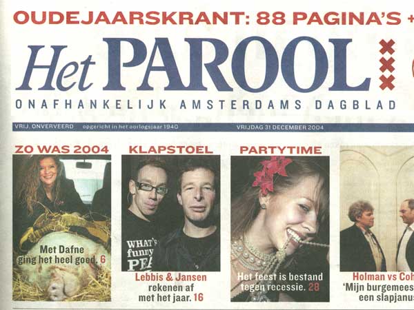 De Dag van De Grote Schoonmaak ![]() Zo. Het is weer eens zover. De bezem moet er weer doorheen. 'Weg met die troep'. Een paar jaar geleden kocht ik dat boekje en werd op slag vrolijk. Heerlijke boekjes zijn dat. Je ziet meteen een heel geordend leven voor je. Alles schoon en fris, mooie stapeltjes in de kasten etc. Een van de leukste dingen vond ik dat er gezegd werd, dat als er een nieuw ding het huis in kwam en meteen vijf moesten verdwijnen. Helaas het echte leven is anders. Met dieren al helemaal. Die houden niet van opruimen. Die willen alleen maar op je schoot zitten en aandacht, ook al zit je in de grootste bende. Maar vandaag dan toch maar weer de goede voornemens bij mekaar geharkt en een goed begin gemaakt. Vanmiddag is het oude houtfornuis eindelijk aangesloten en vanavond brandde er al een knappend houtvuurtje! Roodpels stond er meteen bij. Als de dood dat hij er bovenop zou springen, maar gelukkig was hij slimmer en zocht er een lekker warm plekje onder. Nu Miss Piggy uit huis is, moet je mij horen, net alsof ze het ouderlijk nest heeft verlaten - wat in zekere zin ook zo is, want mijn bed is verruild voor een warme plek in de stal - heeft het ook weer zin om er eens flink de bezem door te halen. Een big in huis is enig, niks leukers dan dat. Maar aan het eind van het liedje, moet de boel toch opnieuw geschilderd en opgelapt worden, want ze maken er gewoon een bende van. Vrijdag 31 december 2004 De Dag van Alles Moet Anders! ![]() Om het stukje te lezen klik hier Tot mijn verrassing stond Maximiliaan vandaag op de voorpagina van Het Parool. Ik was wel gebeld over de diepte en hoogtepunten van het jaar 2004, maar dit wist ik niet. En een leuke foto! Die moet gemaakt zijn door Dagblad van Het Noorden, want ik zit bij Maximiliaan in het Blije Beesten Busje, vlak voor dat we naar huis rijden. Kennelijk rouleren die foto's, ik weet het ook niet precies hoe dat zit. Maximiliaan gaat met sprongen vooruit. Hij laat zich weer aanhalen en vandaag ging hij zelfs plat! Gister hoorde ik van een vriendin dat zij via via had gehoord dat er mensen te achterhalen zijn die hem aan die paal hebben zien staan aan een ketting. Er zou een meisje bij gestaan hebben en die riep de hele tijd dat het zo goed met hem ging. Daarna is hij die kerk ingesleurd... Ik heb inmiddels een telefoonnummer, dus dat ga ik eens even haarfijn uitzoeken... Morgen een nieuw jaar. Alles Moet Anders! Maandag 27 - Donderdag 30 december 2004 De Week van Zoals Het Altijd Gaat ![]() Een week zoals deze weken altijd zijn. Rommelig. Lummelig. Vol nieuwe plannen, maar nog geen zin om er aan te beginnen. Was te gast bij NCRV Plein Publiek. Een eindejaarsprogramma over levensinsteliing en levensbeschouwing. Samen met Kathleen Ferrier van het CDA was ik uitgenodigd. Het thema was actievoeren. Ik eerst een half uur, dan zij en dan nog een half uur samen. Het was weer als vanouds heerlijk om te doen. Kind aan huis word ik daar een beetje. Voor de vierde keer alweer. Uitgebreid bij Vertigo met journaliste Mirjam van Immerzeel thee gedronken en bijgekletst. Ze heeft haar eerste boek geschreven en bracht er eentje voor me mee. 'Dilemma! Wil ik een kind of niet?' En ze gaat een verslag schrijven als de 30 IBM Top vrouwen in het voorjaar de training 'De goeroe ligt in de modder' komen volgen. Leuke dingen dus allemaal. |