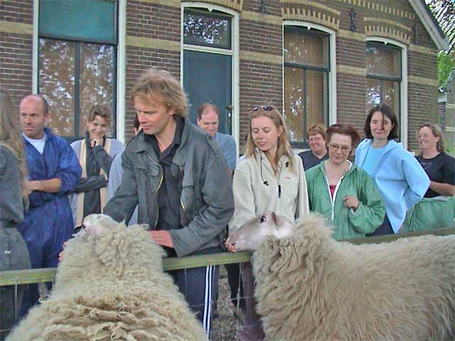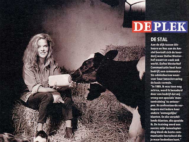 De Dag van Nummer 41 ![]() Perfecte workshop! Zoveel discussie, zoveel betrokkenheid, een enorme kick. Er was een koeienboer bij, die nu sterk overweegt om zijn oude koe Nummer 41 te laten leven. Zeker ook omdat hij niet wist dat koeien als ze echt oud worden ook grijs worden. Ik vertelfde hoe ontroerend mooi dat is, die grijze vlekken in hun gezicht. Het was een leuke man, open en vol interesse. Wil ook iets nieuws beginnen, las mijn reportage in het Parool, wilde de varkens wel eens leren kennen en dacht: er op af! Hij gaf me het mooiste compliment dat ik kon krijgen: "ik denk dat jij meer van koeien weet dan ik" , en bij de varkens keek hij helemaal zijn ogen uit. Een grote gevarieerde groep, ook een vrouw die bekende dat ze bio-industrie vlees eet uit gemak. Dat vind ik geweldig, dat zij zich hier zo veilig voelt om dat te bekennen. Want dat kan hier ook. Iedereen moet kunnen zeggen en denken wat hij/zij wil en dan discussie. Wat die kennis over de beesten betreft, ik denk dat het ook zo is. Ik was op de boerenschool 'de meest leergierige leerling ever', hoorde ik van de leraren, ik vroeg de oren van hun kop. Alle boeken gekocht die ik maar kon vinden, en daar heb ik nog steeds plezier van. Plus natuurlijk mijn observaties van hun gedrag, want dat kwam in de boeken niet of nauwelijks voor. De Drie Musketiers hebben de tijd van hun leven. Zoveel aandacht, zoveel liefde ze krijgen. Iedereen stort zich op de grond en zij springen er zo bovenop. En het geheime plekje, ja dat moet dan meteen uitgeprobeerd worden... Toch zullen het reusachtige beren worden met al hun nukken en genoegens. Ik ben heel erg benieuwd hoe zij zich gaan ontwikkelen. Dat is voor mij ook nieuw. Beren uit de vleesindustrie die oud mogen worden, we wachten het wel af... Moeder, moeder de beer is los, hoor dat beest eens brullen! Snij hem zijn kop en oren af, wat zullen wij gaan smullen! Dit versje kreeg ik opgestuurd van een vrouw die hier een poosje terug ook op de workshop was. Ze was zo onder de indruk. Nu kreeg ik een mail, waarin ze bekende dat ze de eerst tijd daarna geen vlees meer at. En nu weer wel... Zaterdag 28 mei 2005 De Dag van Vruchten & Vlees ![]() foto: Martin Waalboer voor BIZZ (oktober 1997) Mijn nicht kwam op de fiets uit Utrecht en bracht het trouwkostuum van mijn overgrootvader mee. Mooi jacquet met prachtig gemaakte stoffen knoopjes. Ze dacht dat ik 't misschien zou kunnen gebruiken in een performance of zo. En kersen bracht ze ook mee. Kersen! Heerlijk. Ik ben veslaafd aan kersen. En perziken. En necatarines. En mango's. Kilo's kan ik er van op, achter elkaar. Vruchten en vlees, dat heb ik altijd het allerlekkerst gevonden. Begin jaren 70 verwoede pogingen gedaan om te stoppen met vlees eten, maar die mislukten altijd jammerlijk. Nu is me dat wel gelukt. Zelfs de vis is van het menu geschrapt. Laatst had ik iemand in de workshop, die vertelde dat de oermens oorspronkelijk leefde van twee dingen: Vruchten & Vlees. Zie je wel... Nog meer leuke mensen kwamen er langs vandaag. Wat leeft iedereen toch mee met de Familie Bofkont, dat wordt dan zo duidelijk op zo'n inloopdag. De biggetjes stalen natuurlijk de show. Maar Brutale Griet & Rosamunde krijgen ook steeds meer fans. En terecht. Zulke lieve dieren. Zo rustig. Ze stralen een enorm vertrouwen uit. Op een gegeven moment kreeg Brutale Griet mij in het vizier toen ik een eindje verderop met een groepje mensen voorbij liep. Zelf had ze op dat moment de volle aandacht van twee aanbidders. Ze hoorde me aankomen, keek mijn kant op en humde zacht, zoals een koe dat kan doen. Geen loeien, maar een subtiele begroeting, die de onderlinge verstandhouding bevestigt. Net zoals mijn moeder die altijd van tijd tot tijd even mijn kant uitknikte, in een kamer vol mensen. En ineens besefte ik dat die twee grote koeienvrouwen al 8 jaar bij me wonen en dat we samen oud gaan worden. Mijn dag kon niet meer stuk... Vrijdag 27 mei 2005 De Dag van De Dieren Die Altijd Terugkomen... ![]() Mollie in de Viva 1992 Zo raar, gister schreef ik over het ouder worden van Booswicht en de overeenkomsten daarvan met Mollie. Vanochtend werd ik wakker en wist ik meteen dat Mollie precies een jaar geleden gestorven is. De dieren gaan, maar komen ook weer terug. Het nieuwe witte poesje heeft veel van Mollie weg. Een van de kuikentjes van Zwartje blijkt tot mijn grote verrassing een Golden Girltje te worden! Heel vroeg Giel gesmst dat ik vanochtend toch niet in zijn uitzending ga. Daar was gister nog sprake van toen hij belde, omdat hij door de Nieuwe Revu geinterviewd zou gaan worden. Maar over S. heb ik eigenlijk alles al gezegd. Willem kwam langs en we hebben zijn koeien van achter naar voren gebracht. Ze liepen zo mooi in de kudde over het pad. Machtig gezicht toch altijd, een stel koeien die allemaal naast elkaar dezelfde richting oplopen. Dat dreunen van die hoeven. Zo imposant. En met het mooiste weer van de wereld heb ik vanaf de middag tot diep in de nacht achterstallige mails beantwoord. En nog niet klaar. Jaren geleden deed ik dat lekker buiten. Dan bouwde ik iedere zomer een buitenoffice onder een afdak - ik heb zelfs een zomer lang een 'pooloffice' gehad bij het zwembadje - maar die tijden zijn voorbij. De Familie Bofkont heeft zo'n omvang gekregen dat de dieren de regie op het erf volkomen hebben overgenomen. De varkens gooien alles om, het zwembad is inmiddels ook helemaal vernield, laptops smakken tegen de grond, dus uit met de pret. Laatst kwam ik nog foto's tegen uit het begin, alles prachtig en beeldschoon gestyled, een reportage in Elle Wonen waardig. Nu breng ik de warme zomerdagen slovend als Assepoester door in een kantoortje, terwijl de hele Familie Bofkont buiten ligt te zonnebaden. Verschil moet er zijn, maar mij hoor je niet klagen... Donderdag 26 mei 2005 De Dag van Jarige Booswicht ![]() Booswicht is vandaag 16 jaar geworden. Ze begint een beetje te worden zoals Mollie in haar laatste maanden. Onvast ter been en als ze op mijn computer ligt te slapen stort z