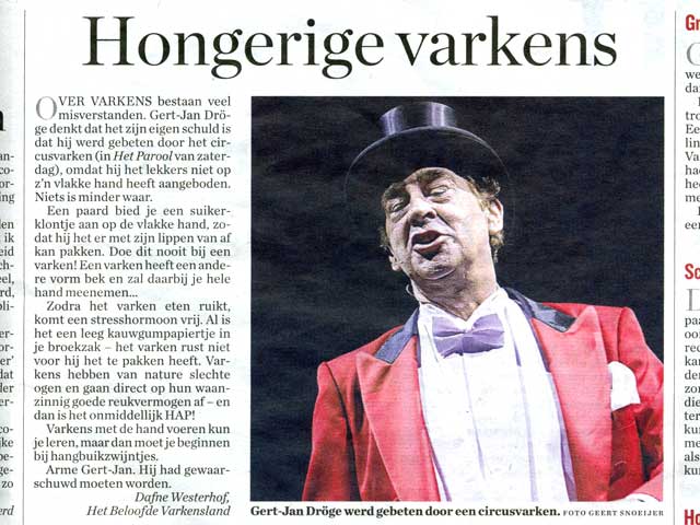 De Dag van De (Kr)Acht ![]() Ergens in Nederland wordt op dit moment de boel afgebroken. Niet bij mij. Het zit zo: Ik kreeg vorige week een lot cadeau van de Oudejaarsloterij met een nummer dat eindigt op 8. Acht is het getal van succes en als je de 8 een kwartslag draait, zie je het oneindigheidsteken, oftewel de lemniscaat. Dat lemniscaat hangt boven mijn hoofd. Althans op de kaart KRACHT, en dat is mijn levenskaart. Tot zover dit. Nu ben ik nooit van de loten etc. geweest, maar op de een of andere manier had ik de afgelopen dagen steeds het idee dat die 20 miljoen mijn kant uit zouden komen. Kan natuurlijk ook zijn dat ik me van alles in mijn rare koorstkop haalde natuurlijk. Enfin, gisteravond was de trekking op televisie tussen het gezwier van Dancing with the Stars door. Ik vierde Oud en Nieuw met Arie Bombarie, die als een bodyguard naast mijn bed postte en voortdurend Booswicht, Spook en Stinkwijfje belaagde als ze naar zijn smaak te dicht in mijn buurt kwamen. Dat leverde nogal wat gedoe op, zodat ik op een gegeven moment dat hele lot kwijt was. Op een gegeven moment viel ik in slaap en toen ik weer wakker schoot, was het hele programma al voorbij. Dus vanochtend eerst eens alles over hoop gehaald en vond ik het lot onder mijn bed. En wat blijkt? Die 20 miljoen zijn in mijn 8 serie gevallen! Alleen niet op dat lot van mij! Er waren in totaal 4 loten in de 8-serie. Dus ik had in principe een kans van 1 op 4!!! Geen wonder dat ik er steeds aan gedacht heb Je hebt een lemniscaat of niet... Het laagste bedrag uit de 8- serie is nu voor mij, te weten TIEN euro. Echt iets voor mij. Een mens van uitersten. Alles of niks. Ik ga meteen mijn broer bellen. Gedeelde smart is halve smart. Hahahahahahahahahahaha. Zaterdag 31 december 2005 De Dag van Het Afgelopen Jaar Een paar dagen in bed, meer dan genoeg tijd dus om te denken aan alle gebeurtenissen van het afgelopen jaar. Er is zoveel gebeurd. En het gaat maar door. Helemaal vol ben ik nog van mijn bezoek aan de meer dan 80 zwerfkatten bij stichting Help De Zwerfkat in Uithoorn, afgelopen week. Ik had poezenjournalist Channah van 'Majesteit' getipt. De reportage werd meteen een nominatie voor de Majesteit Award. Zoveel katten en je kon van de grond eten. Wat doen zij - Els & Annemiek - goed werk! Niet alleen voor de zwerfkatten, maar ook voor het imago van de opvangcentra. Je leest zo vaak dat een vrouw 'in overspannen toestand' met meer dan 100 katten uit haar huis gezet is. Zeker zal dat voorkomen. Maar het kan dus ook heel anders. Een kwestie van discipline, een strak management en een hele hoop vrijwilligers. Niet lullen maar poetsen. Vanavond ga ik een kaarsje branden voor Lady Lolita, Golden Girl, Roodpels, Gevaarlijke Eddy, Dansmarieke, Grootmoedertje en Het Arme Schaapje. Iedere dag word ik wel een paar keer aan ze herinnerd. Ze blijven er altijd bij. Nu moet ik uitkiezen welke foto er bij deze log geplaatst moet. Ik wil ze allemaal! Dat gaat niet. Lady Lolita ging als eerste, in januari al, dus dan kies ik haar. Ik zal D. vragen of hij de anderen voor deze keer er allemaal onder kan zetten. Dan zorg ik dat morgen de nieuwkomers van 2005 nog eens even allemaal voor het voetlicht komen... ![]() ![]() ![]() ![]() ![]() ![]() ![]() Donderdag 29 december 2005 De Dag van Heusden ![]() Ziek zijn bestaat dus. Ik heb het zwaar te pakken. Vannacht aan alle kanten leeggelopen, daarna voor dood tot vanmiddag in bed gelegen. Even achter het toetsenbord gezeten en gezien dat mijn ingezonden stukje voor Het Parool over het circusvarken en Gert-Jan Droge is geplaatst. En dat het plaatsje waar mijn broer woont - Heusden - in de prijzen is gevallen van de Postcodeloterij. Nog nooit is er zo'n grote prijs gevallen. Meer dan 22 miljoen euro! Maar... MIJN BROER HEEFT NIET MEEGESPEELD! Dat is om gek van te worden. Het hele dorp - een Middeleeuws vestingstadje - praat over niks anders meer. Iedereen krijgt sowieso 3000 euro, of 5000, dat weet ik niet meer. En dan is het wachten nog op waar de grote klappers gaan vallen (de miljoenen en zo) als de letters achter de cijfers van de postcode bekend gemaakt gaan worden. OOOOOOOOOOOOO WAT BALEN!!!!! Woensdag 28 december 2005 De Dag van De Veren ![]() In geen 100 jaar had ik een ordinaire verkoudheid, maar nu loop ik te kuchen en niezen en is slikken vrij pijnlijk geworden. Kan me echt niet meer heugen wanneer ik dat voor 't laatst had. Eerst toch nog stoer de polder in, maar de wind was zo straf en ijzig, dat het me toch slimmer leek om bij de kachel te gaan zitten. Gelukkig bracht de post iets leuks van varkensvriendin Ellen: De 13 Originele Clan Moeders. Gaat over vrouwelijke principes en spiritualiteit, en verschillende type persoonlijkheden ingedeeld in maancycli. Ik behoor tot de 11e maancyclus 'ZIJ DIE HAAR KRACHT IS'. Zij is de beschermster van leiderschap en de bewaarster van nieuwe wegen. Ze is de moeder van schoonheid en gratie en de bewaarster van innovatie en doorzettingsvermogen. Ze is het rolmodel van gezondheid, fysieke fitheid, uithoudingsvermogen en weerstand en laat zien hoe je je kunt laten leiden door je hartenwensen. Ze is de bewaarster van persoonlijke onkreukbaarheid en de beschermster van alle vormen van innerlijke kracht. ZIJ DIE HAAR KRACHT IS leert hoe we op ons best kunnen zijn en tegelijkertijd kwetsbaar en menselijk; hoe we nieuwe wegen kunnen zoeken en vinden om te groeien en te leren, hoe we innerlijke kracht kunnen ontwikkelen en hoe we dingen aan kunnen trekken en los kunnen laten. Leef je waarheid. (walk the truth). Mooi zo. Dus ik zal wel snel weer beter zijn. Toen nog snel even naar de 10e maancyclus gekeken, die van mijn ascedent (ik ben Schorpioen met ascedent Weegschaal). Die is mogelijk nog mooier. Ik als muze, die visioenen en dromen uit kan laten komen etc. Het kan niet op. Ik geloof dat ik al bijna beter ben. Trouwens, al die andere maantypes kregen minstens zoveel mooie veren in hun reet gestoken... Dinsdag 27 december 2005 De Dag van de Witte Wereld ![]() Een witt