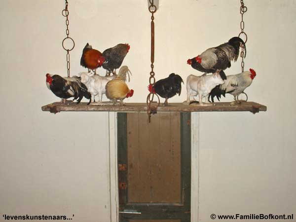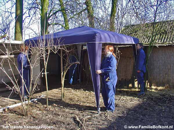Ondanks onze rotkoppen kregen we er de slappe lach van. Dat zou toch niet waar zijn dat we al bouwend aan het Hanenpaviljoen gedrieen ten onder gaan aan de vogelgriep?