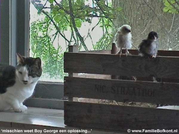 Zo parmantig ze nog rondstapten vorige week. De vier kuikentjes, die er een poosje geleden zomaar plotseling waren - een wonder tijdens een ijskoud weekend - ze zijn helemaal verdwenen. Ik hoef me niet druk meer te maken hoe ik ze te pakken ga krijgen.
