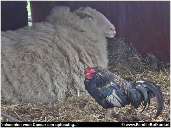 bij de rest van de hanen, zonder dat ze mekaar de tent uitvechten...