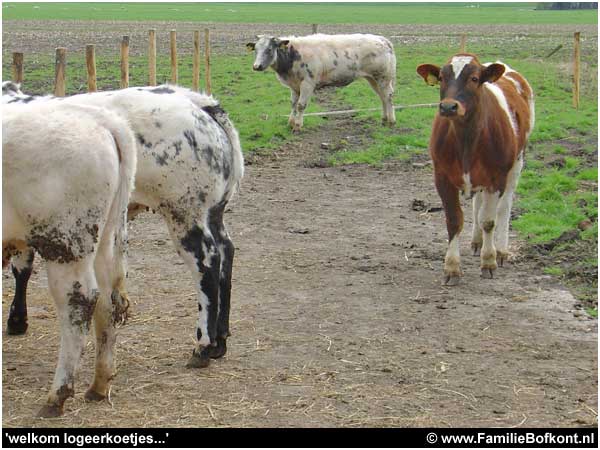 Gister zijn er nog 4 logés bij gekomen. Vier dikbil koekalfjes, ik schat ze een maand of zeven. Ze zijn schuw, maar wat zijn ze leuk.