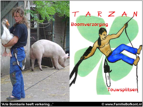 Tarzan is trouwens leuk. Een soort oerjongen. Een halve wilde, hij woont hier verderop in een romantisch woonwagenachtig kampementje, achter bij een boer. Rijdt rond op een bakfiets - een kunstwerk op zich - en heeft hier een paar jaar geleden een haan uitgezocht - Jean Pierre genaamd - vanwege zijn nichterige voorkomen.