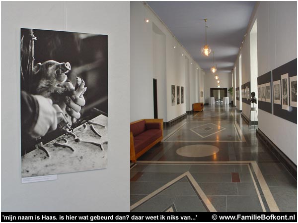 En tussen die gruwelijke beelden, opgehangen in een voornaam pand met een statig lange gang en een beeldschone marmeren vloer, stond iedereen met een drankje te kletsen over Koetjes & Kalfjes.