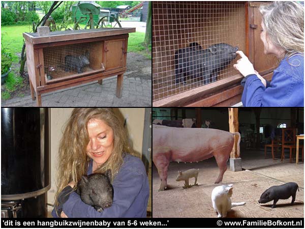 Niets is zo verleidelijk als het aanstekelijke gesmak van een tevreden zwijntje. Maar hoe klein hij ook is - als ik nu teveel geef, wordt daarmee de basis voor zijn latere eetgedrag gelegd. En er sterven meer hangbuikzwijnen aan vetzucht dan aan ouderdom... En o wat kan hij boos zijn als ik voet bij stuk houd.