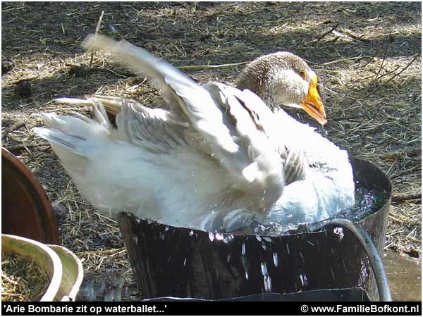 Of Arie Bombarie die uitgebreid gebadderd heeft in een teil water.