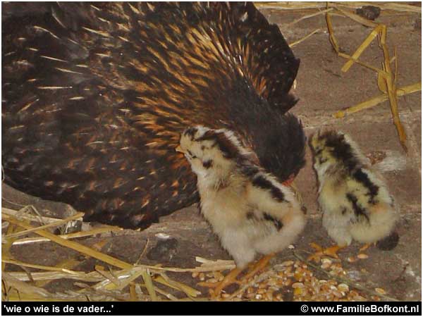 Ja hoor, Kippie is iedereen weer te slim af geweest. Gister zat ze er ineens weer met 2 snoezige kuikentjes. De vorige keer had ze Zwartje & Witje als buren. Toen ging het na een week al mis...
