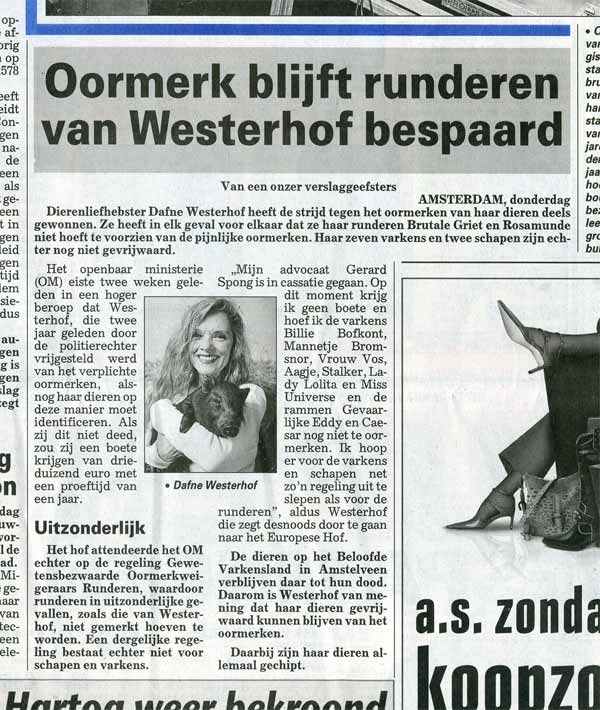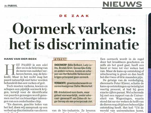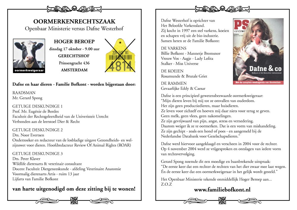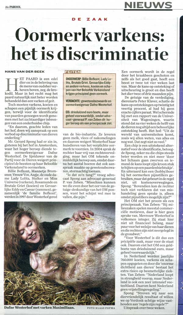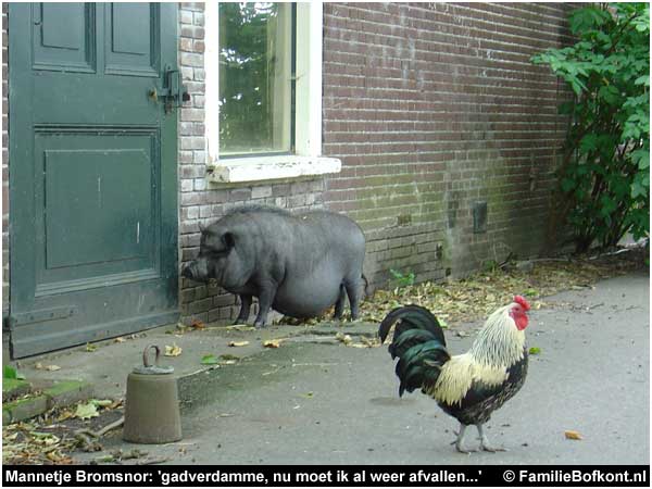Hier kan ik het zwijntje niet opnemen, want ik heb de rechter - in verband met de oormerkenrechtszaak - verzekerd dat de Familie Bofkont voltallig is en dat heb ik onder ede verklaard...