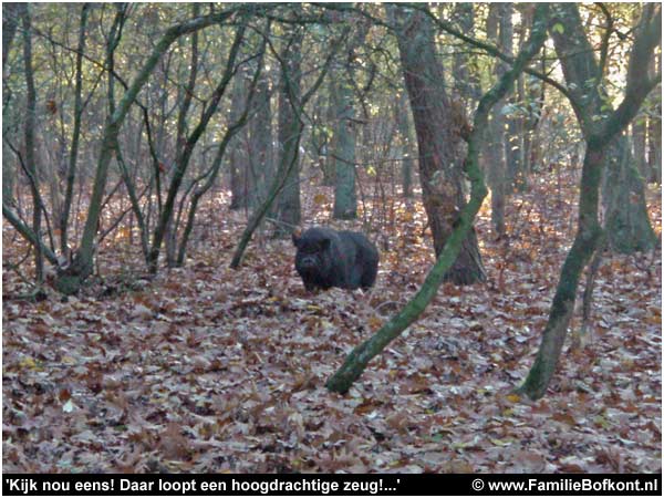 4. Na drie kwartier vingen we in de verte een glimp op van het hangbuikzwijn, dat als een dolle door het bos en over boerenakkers rende om ons te ontvluchten.