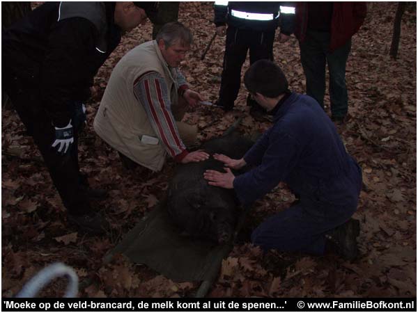 Samen met Dennis, Toos en Peter hebben we al veel van dit soort klussen gedaan. Fantastische mensen waar je de oorlog mee kunt winnen. Meestal zijn het ongecastreerde beren die gedumpt worden. De castratie doen we dan meteen onder narcose achter in het busje, evenals hoefjes, gebit-check en wat er nog meer nodig is aan eerste hulp voor verwaarloosde gedumpte varkens.