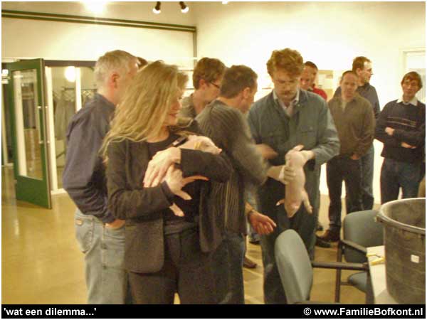 Nee, niet van het verkiezingsfeest, want daar was ik niet. Er was iets belangrijks dat ik niet missen kon. Ik kreeg de kans om gisteravond als toeschouwer aanwezig te kunnen zijn op de Verdoofde-Biggencastratie-Cursus voor biologische boeren in Raalte. Die cursus was tweemalig en gisteravond was de laatste kans. Die kans mocht ik niet laten lopen. De plicht riep!